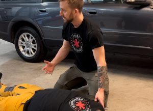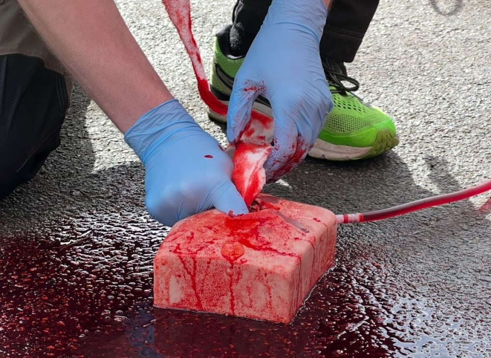 Utbildningen i att stoppa livshotande blödning är vetenskapligt förankrad och bygger på ett militärt protokoll som har räddat tusentals, om inte tiotusentals liv. Varje utbildning har ett grundblock av teori och praktik, därefter skräddarsyr vi övningsscenarierna så att de passar in på er verksamhet. Varje grupp om 16 deltagare har minst tre instruktörer – för att varenda deltagare verkligen ska få nöta hantverket och känna sig säker.