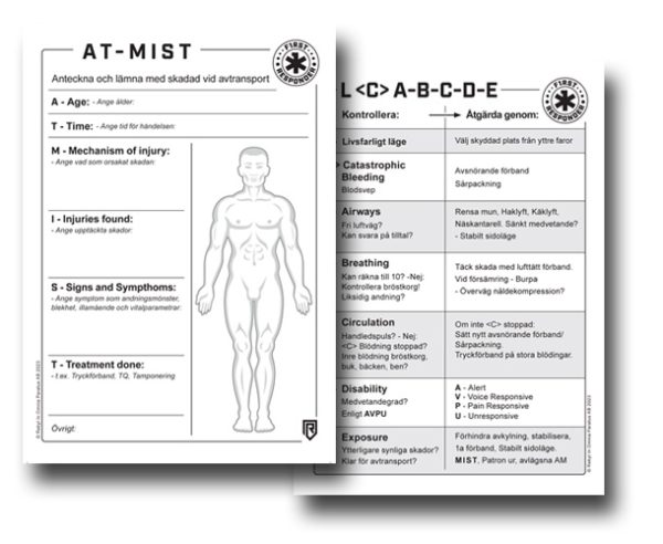 Har tyvärr fått användning för detta bra hjälpmedel. Har alltid minst ett exemplar i benfickan, delar gärna ut till intresserade. Ambulanspersonalen uppskattar överlämningen. Bra stöd vid kaotiska situationer.