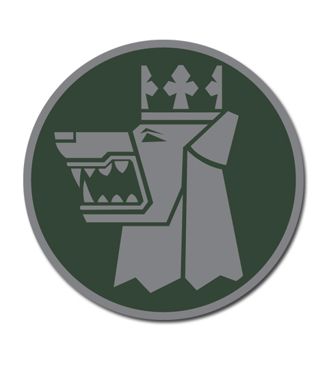 Hem / Armens Jägarskola / Lapplands Jägarregemente / Sticker – I22 Vargen Grå på Grönt