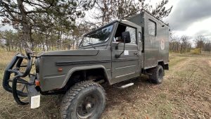 Fordonet är enkelt att serva på plats i Ukraina och tar sig fram även i risig terräng. En av fördelarna med detta fordon är att det finns plats för många skadade och även plats för sjukvårdare.