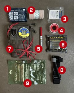 Kriget kostar oerhörda mängder människoliv. Det är konstant brist på akutsjukvård. Så när vi får möjlighet att skeppa ner materiel som gör vi det. Den här gången i samarbete med Operation Aid. Allt som kan ta hand om främst splitterskador från artilleri är hårdvaluta, tourniqueter, chest seals, sårpackning och tryckförband.